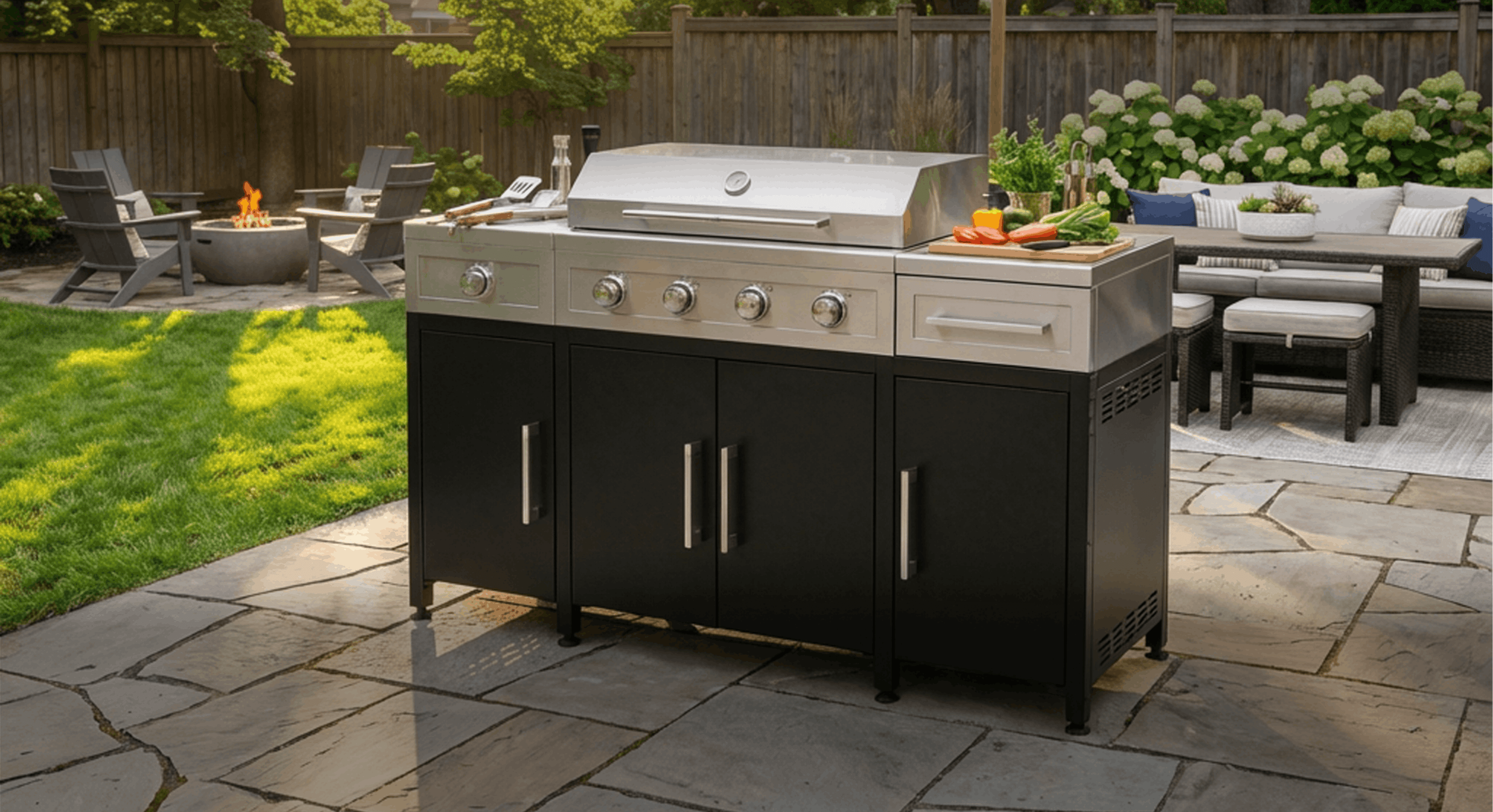 Simmer your sides, sear your mains and handle all prep and cleanup in one complete outdoor kitchen setup.